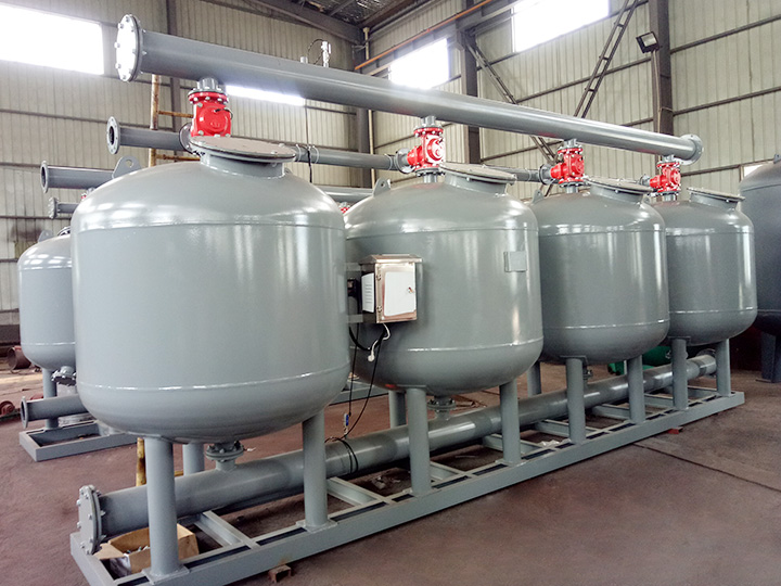 當系統處于過濾狀態時,未經過濾的水通過布水器均勻布水,水以層流狀態通過濾器內的填料層 。當水流過填料層時,雜質被截留在填料層內。過濾器底部有多個均勻分布的集水器,將過濾后的水均勻地收集并引出,平流過濾,可以使過濾器在高流速下過濾,仍可達到較好過濾的效果。