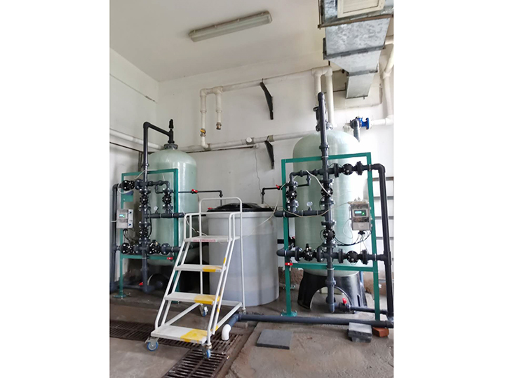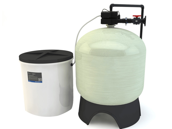 2、軟水器由兩個樹脂罐(主罐和副罐)水力控制閥、鹽箱三部分組成,控制閥控制水路在主罐和副罐之間切換,保障總有一個罐處于工作狀態,而另一個罐處于再生或備用狀態,再生鹽液靠閥內裝設的文丘里噴射器負壓吸入,再生及清洗用水是另一個罐的軟化出水。對于不同的原水硬度配用不同號碼的水表盤以達到對應的工作和再生周期。